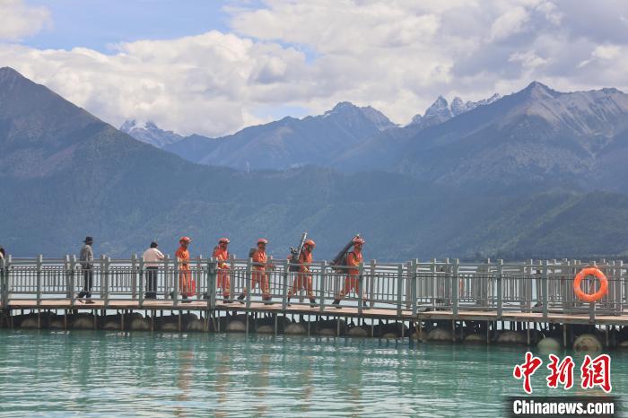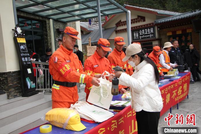 圖為消防員正在景區入口開展防火宣傳。西繞拉翁 攝