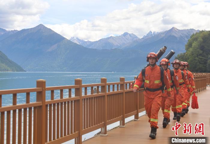 圖為消防員正在景區巡邏。西繞拉翁 攝