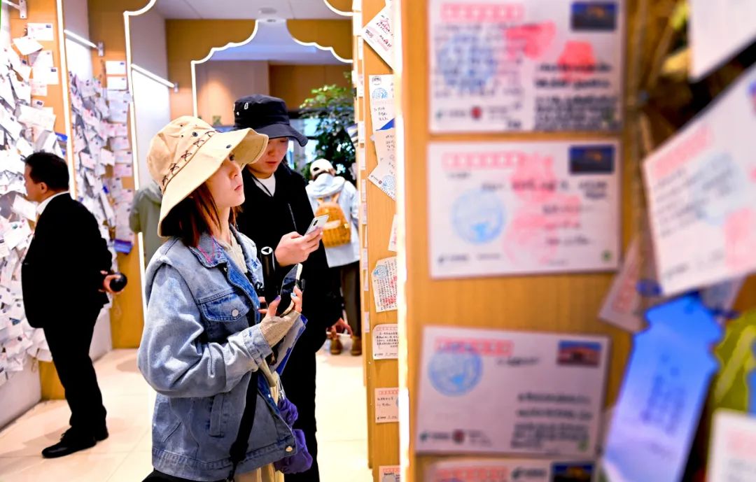 邊走邊看,留言墻、時光郵局、文創體驗區、有聲圖書館等,記者目不暇接。