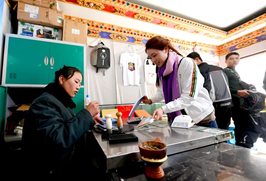 記者到來時,看到一些氣喘吁吁、高反嚴重的游客顧不上休息調整,一下車就進了郵局。“能在海拔5000多米的地方給家人朋友寄一張明信片,意義絕對不一般!”一位游客笑著說。