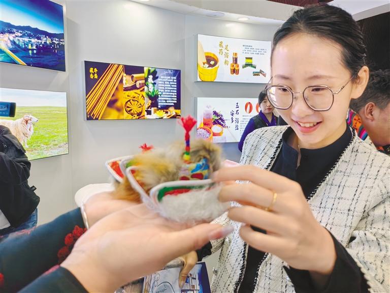 “這次畜產(chǎn)品展銷活動(dòng)上,我們主要銷售天線帽工藝品、玉石、羊毛圍巾、羊毛毯等,產(chǎn)品價(jià)格比較實(shí)惠,前來(lái)咨詢購(gòu)買的人也很多。展銷不到兩個(gè)小時(shí),就賣了1000多元。”安多縣措那湖文化傳播有限責(zé)任公司負(fù)責(zé)人貢布多吉的臉上充滿了喜悅。