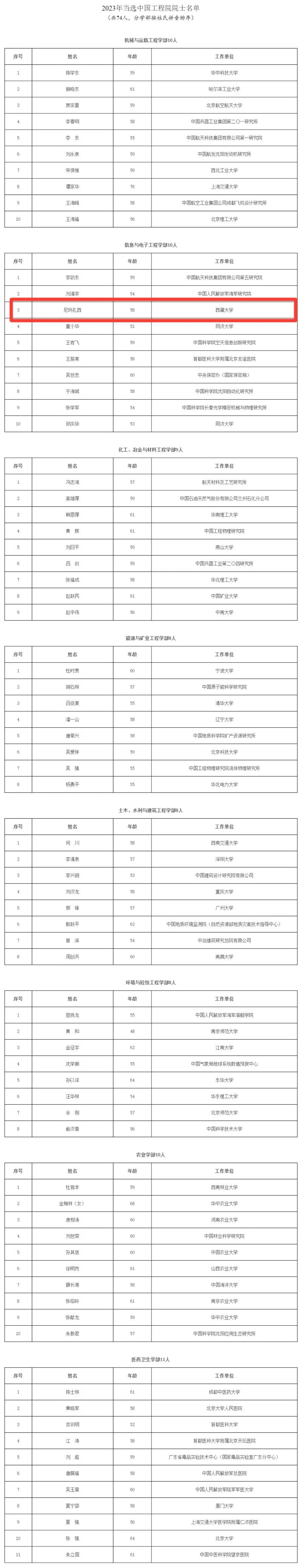 2023年當(dāng)選中國(guó)工程院院士名單如下: