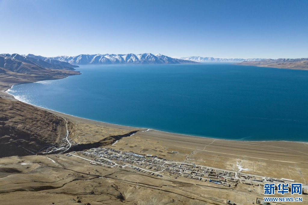 12月20日拍攝的當(dāng)惹雍錯(cuò)和村莊(無(wú)人機(jī)照片)。新華網(wǎng) 旦增努布 攝