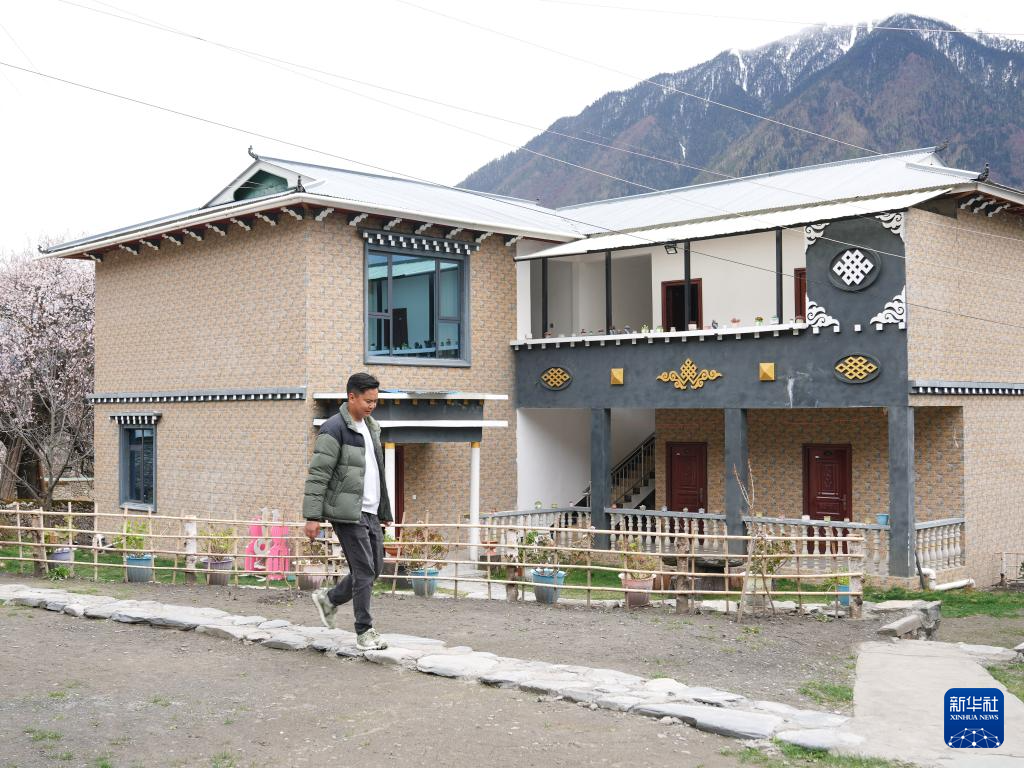 4月2日,洛松頓珠從自家民宿前經(jīng)過(guò)。新華社記者 丁汀 攝