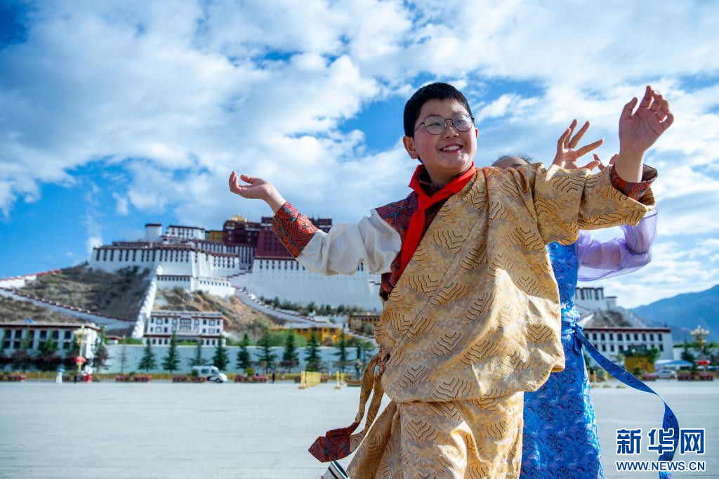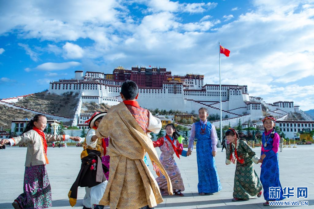6月1日,小朋友們在布達拉宮廣場歡慶“六一”國際兒童節。新華網 旦增努布 攝