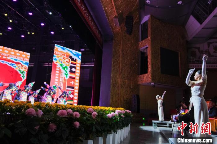 9月23日晚,西藏自治區首屆殘疾人文藝匯演在拉薩開演,來自西藏各市地的聽障、視障以及肢體殘疾群體紛紛登上舞臺一展風姿,舞蹈、歌曲、手語等節目輪番上陣。圖為當晚演出現場,孩子們和手語指揮老師相互配合。記者 江飛波 攝