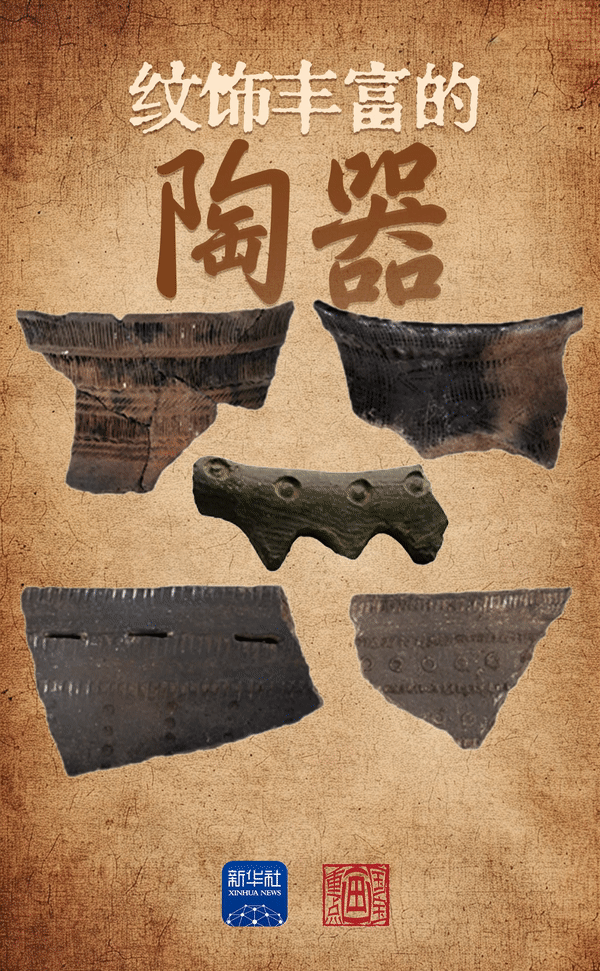 發現了各種有著紋飾的陶器碎片