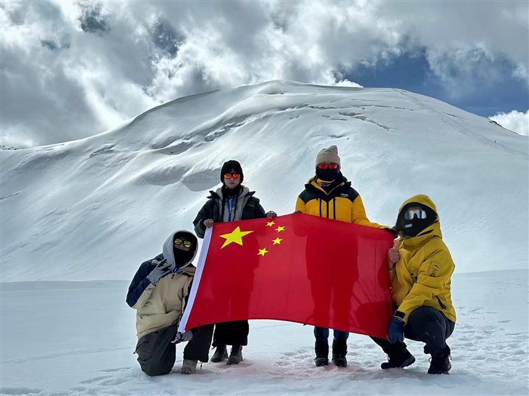 鄒師思告訴記者:“登山過程中,我們團隊展現了高度的專業性與協作力。學院領導提前提供物資與精神支持,專業教練指導徒步與技術訓練。在海拔5500—6000米段,隊伍統一行軍節奏,避免體溫流失或體力透支;登頂時,訓練突出者率先觸頂,為體力較弱者提供鼓勵與幫助。”她感慨:“團隊協作是登頂的關鍵,真正的勇氣源于科學準備與戰略堅持。”