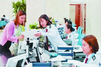 福建省稅務部門依托大數據,大力推進部門間數據共享融合,推進“互聯網+稅務”。圖為福州市鼓樓區地稅局辦稅服務廳內,工作人員在國地稅聯合辦稅窗口為納稅人辦理涉稅業務。新華社發