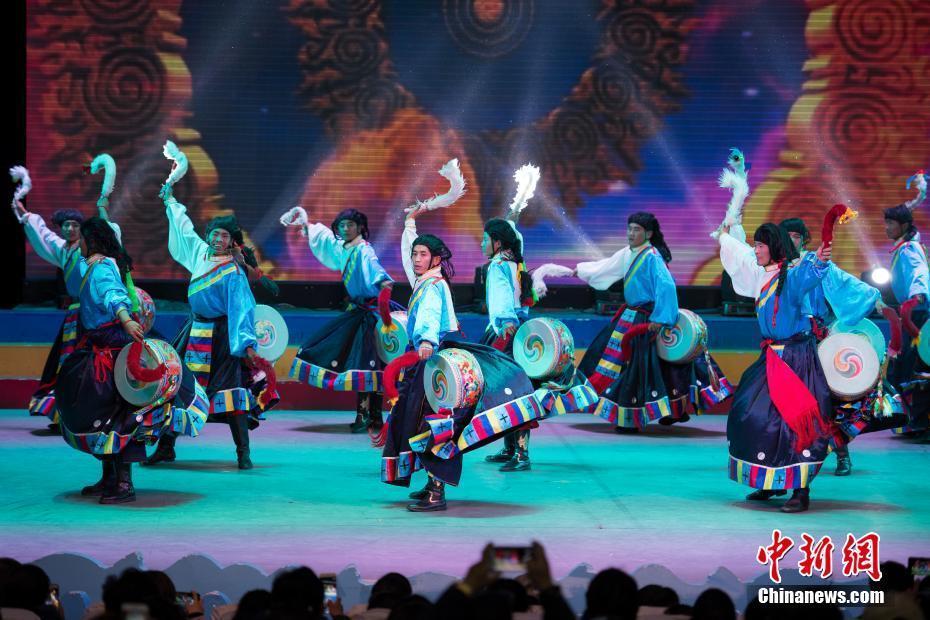 2月10日,隨著2018年春節和藏歷新年的日益臨近,西藏拉薩的節日氣氛越來越濃。當晚一場傳統歌舞晚會,提前為拉薩民眾送去新春的祝福。晚會以傳統藏戲、歌舞、小品等表演形式,把藏民族古老的藏戲、卓舞、鍋莊等非物質文化遺產搬到了新年舞臺。圖為中國國家級非物質文化遺產《卓舞》表演。中新社記者 何蓬磊 攝