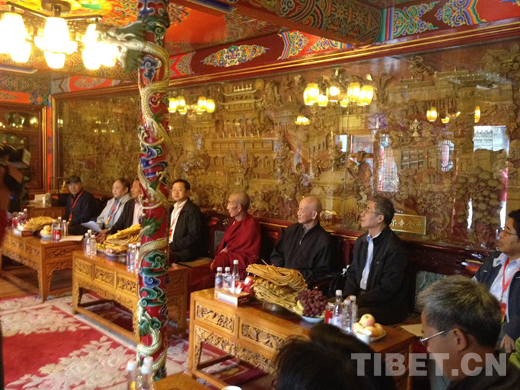 圖為2014年考察期間,專家學者們與塔爾寺寺管會領導交流