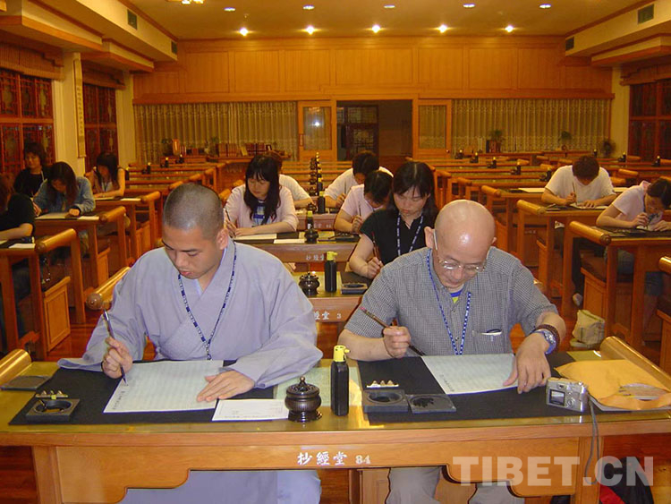 圖為2004年陳慶英先生在臺灣講學期間,于佛光山體驗抄經