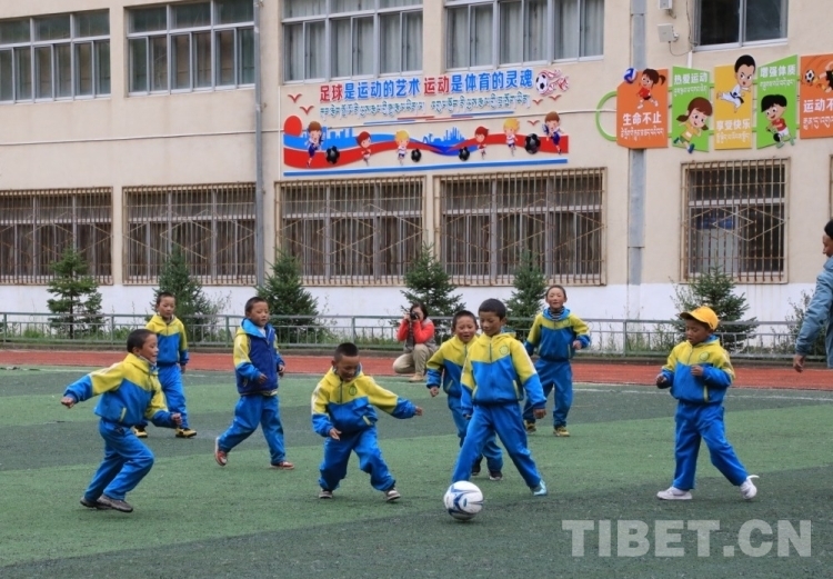 其中,達(dá)瓦對足球情有獨鐘。“我自己很喜歡踢球。剛開始足球興趣班都是我自己帶的,后來因為需要帶藏文書法興趣班,就讓體育老師來負(fù)責(zé)了。但平時周末會跟學(xué)校老師或者附近鄉(xiāng)里的朋友們一起踢比賽,有時也會在體育課上跟學(xué)生一起踢球。”他說,“開設(shè)足球班,不僅是讓學(xué)生享受體育運動、享受競技比賽,還為了讓他們知道團(tuán)隊的重要性,學(xué)會與他人合作,相互支持,公平競爭,最重要的是讓學(xué)生明白如何在規(guī)則下去贏,又如何有尊嚴(yán)和體面地去輸。”